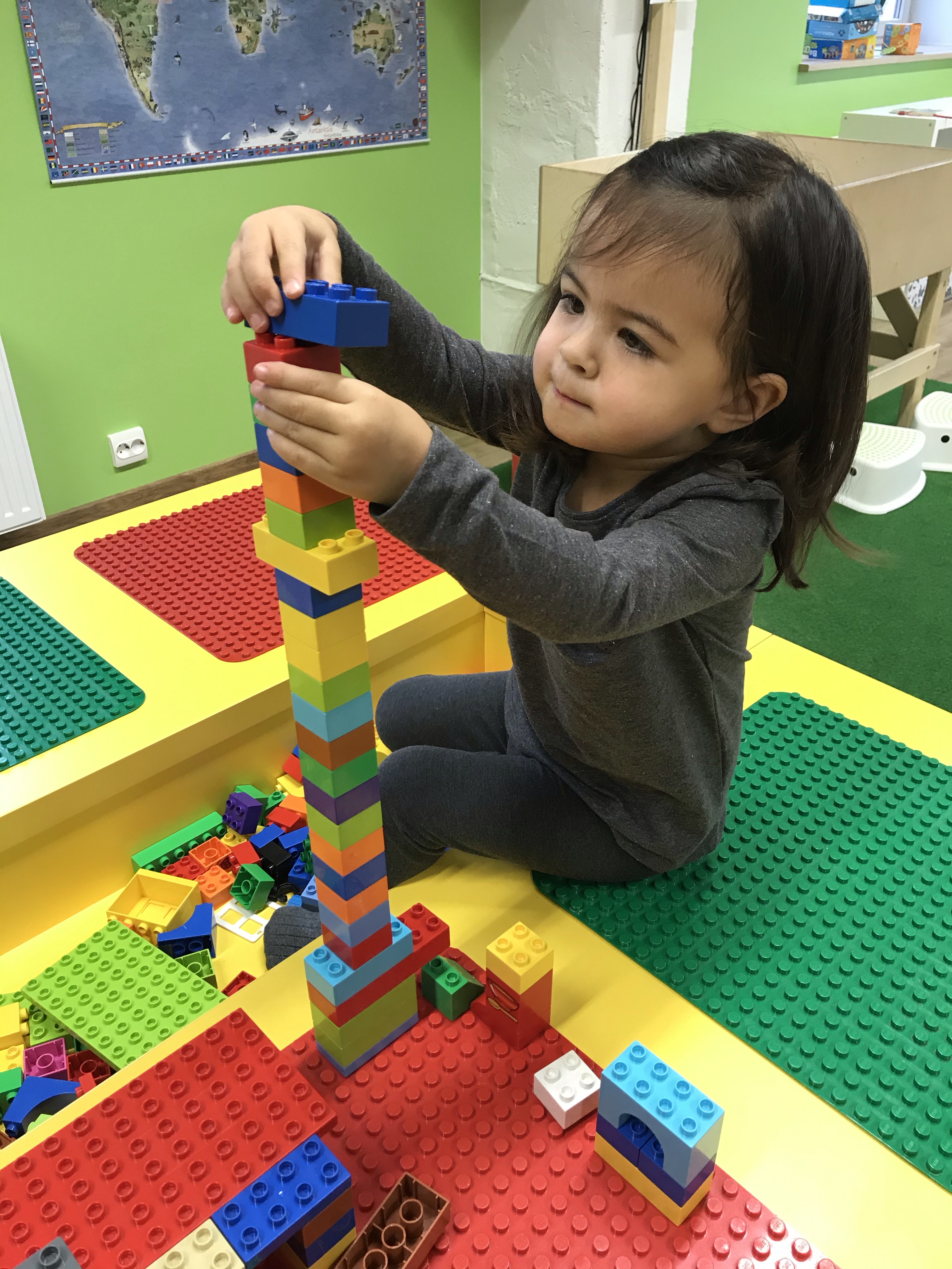 Mulle meeldis, et hinna sees on kohv ning suupisted. Ma ei tea mitte ühtegi ema, kes ütleks ära hommikukohvist, olgu see esimene, teine või juba koguni kolmas tass (no judging!). Londoni soft play ruumides selline asi tavapärane ei olnud, ikka tuli toidu eest juurde maksta, kui selline võimalus üldse esines. Tihtipeale tõin ma kaasa ka oma sülearvuti, et asju ajada ning need paar tunnikest võisid päris asjalikult mööduda. Vahel aga veetsin terve hommiku temaga põlvili põrandal mängides ja teiste emadega jutustades. Mängimiseks on seal palju huvitavaid võimalusi, tütre lemmikuks kujunes vist kööginurk ja pallimeri ja mulle meeldis Duplodest maju ehitada. 🙂
